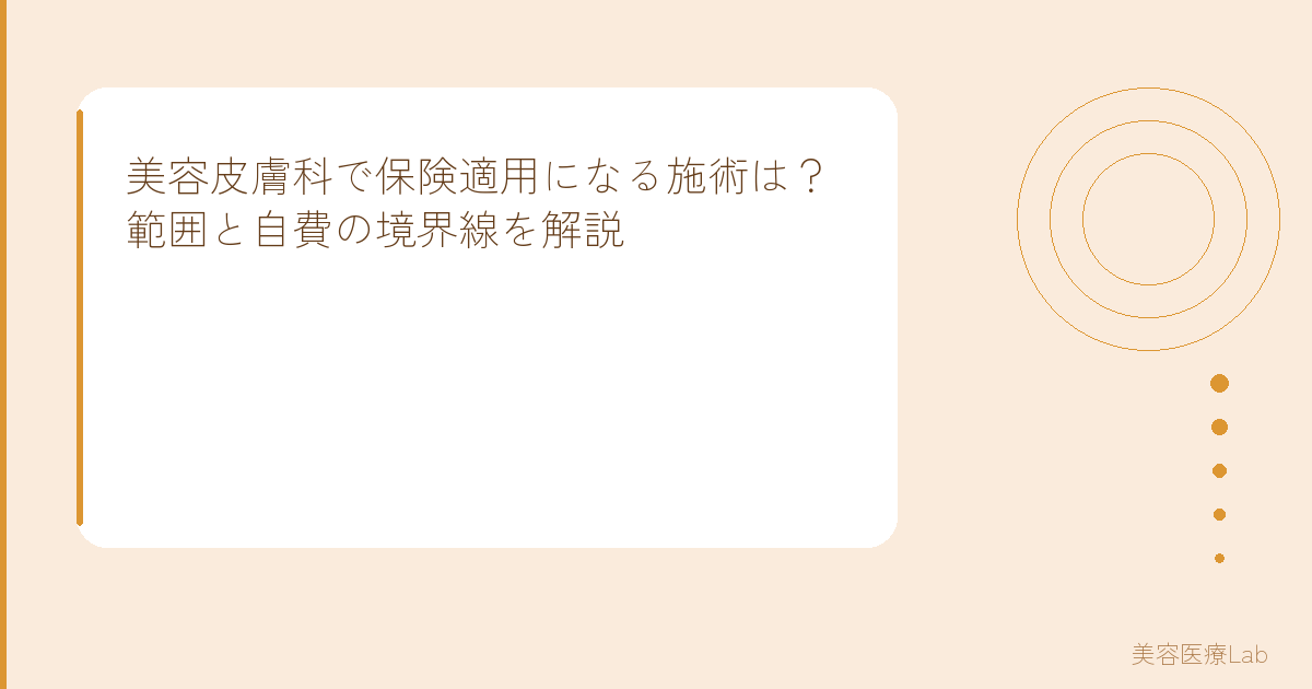 元美容クリニックカウンセラーのまりなです。美容皮膚科は全部自費だと思ってる人が多いけど、実は保険が使える施術もあるの。どこまでが保険適用か解説するね。